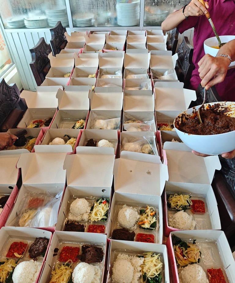 Rendang, ayam Goreng, dan gulai tunjang dimasak dengan resep turun-temurun penuh cinta.